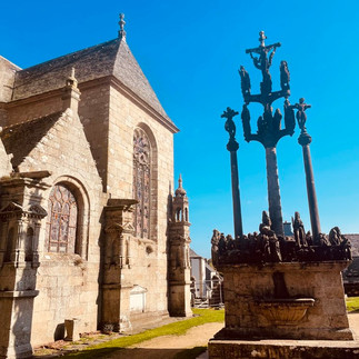 Die sogenannten Pfarrbezirke (Enclos paroissiaux) sind ein architektonisches und religiöses Unikum der Bretagne, insbesondere im Département Finistère. Sie entstanden hauptsächlich im 16. und 17. Jahrhundert, einer Zeit des großen Wohlstands in der Region durch den blühenden Handel mit Leinen und Hanf. Die wohlhabenden Gemeinden wetteiferten miteinander, um die prächtigsten und reichst ausgestatteten Anlagen zu errichten, was die bretonische Renaissanceprägte. Ein typischer Pfarrbezirk ist von einer Umfassungsmauer umgeben und vereint mehrere markante Elemente: ein monumentales Triumphtor als Eingang, die Pfarrkirche, ein Beinhaus (Ossuaire), in dem Gebeine früher Bestatteter Platz für neue machten, und einen figurenreichen Kalvarienberg (Calvaire), der die biblische Passionsgeschichte darstellt. Diese Bauwerke dienten nicht nur der Gottesverehrung, sondern auch als Demonstration des gemeinschaftlichen Reichtums und der tiefen religiösen Inbrunst, oft verbunden mit Elementen der Gegenreformation. Sie sind heute von unschätzbarem historischem und kulturellem Wert und gelten als eine Art "Bibel der Armen", die durch ihre lebendigen steinernen Szenen die Glaubensinhalte vermittelte.