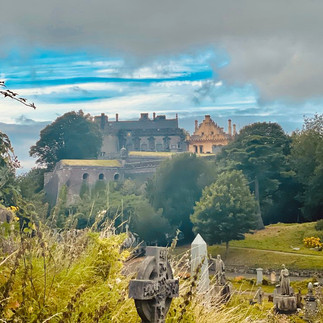 Königlich empfängt uns die Burg der Stuarts in Stirling (Außenbesichtigung), um die sich das Land wie ein grüner Teppich ausbreitet.