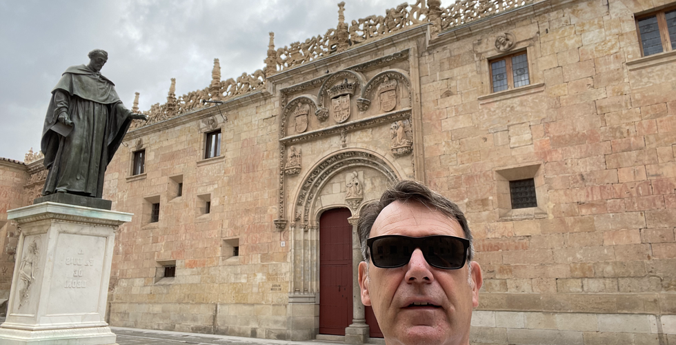 Gestern ging es zuerst mit dem Flieger nach Madrid: mein erster Flug in der Corona-Zeit. Eigentlich wollte ich diese Reise im letzten Jahr vollständig mit Zug und Bus machen, die Distanz erfahren und wahrnehmen, sich Zeit nehmen und wirklich reisen und nicht jeten. Meinen CO2 Fußabdruck kann ich sowieso nicht heilen, doch ich hätte schlicht und einfach die Zeit dazu. ABER: Wegen Corona fast 24 Stunden mit einer Maske in öffentlichen Verkehrsmittel sitzen, wollte ich mir nicht antun. So ging es dann nur ab Madrid mit dem Bus nach Salamanca - das reichte auch bezüglich der Reisedauer. Anders kommt man aber auch nicht schneller hier hin.